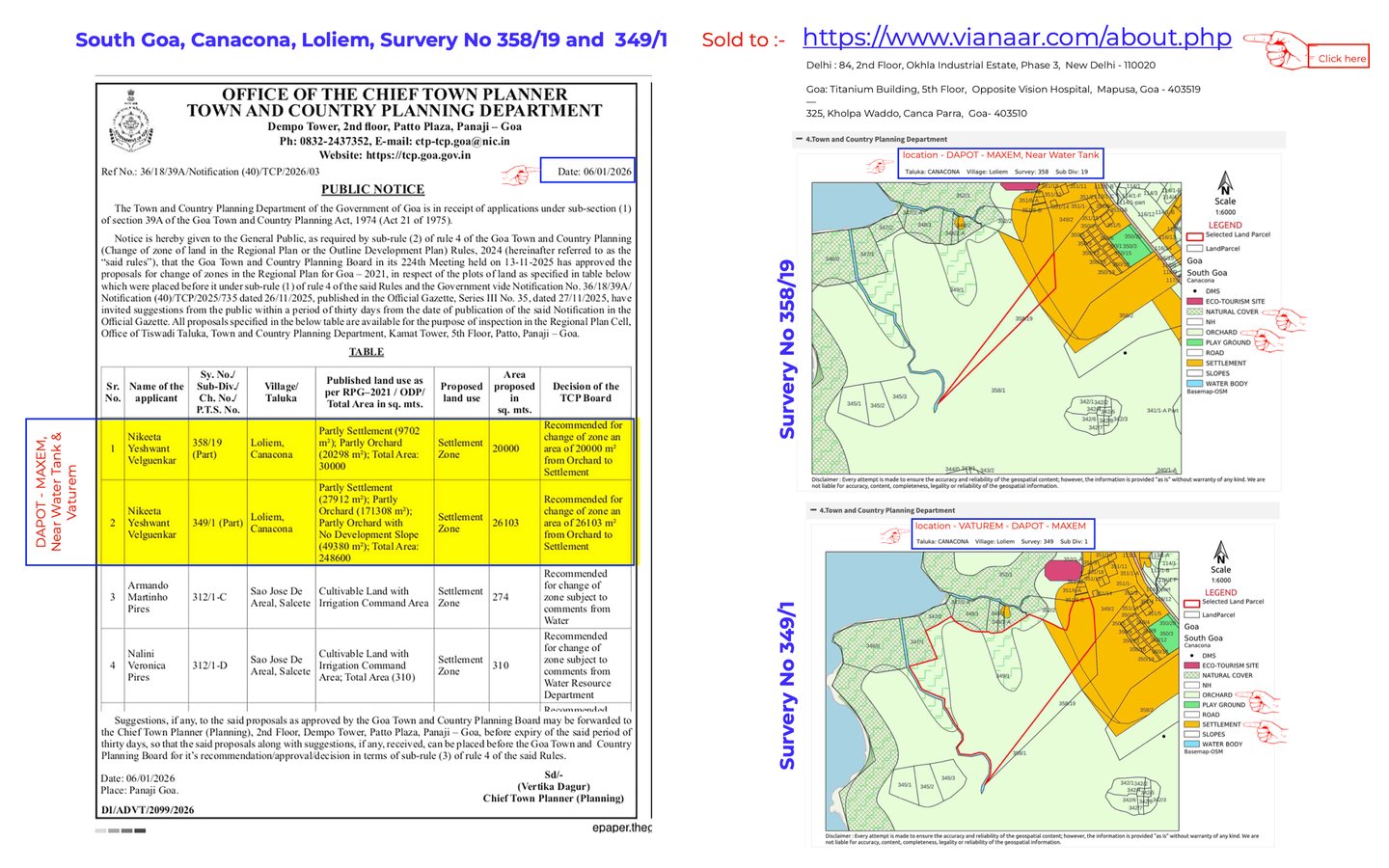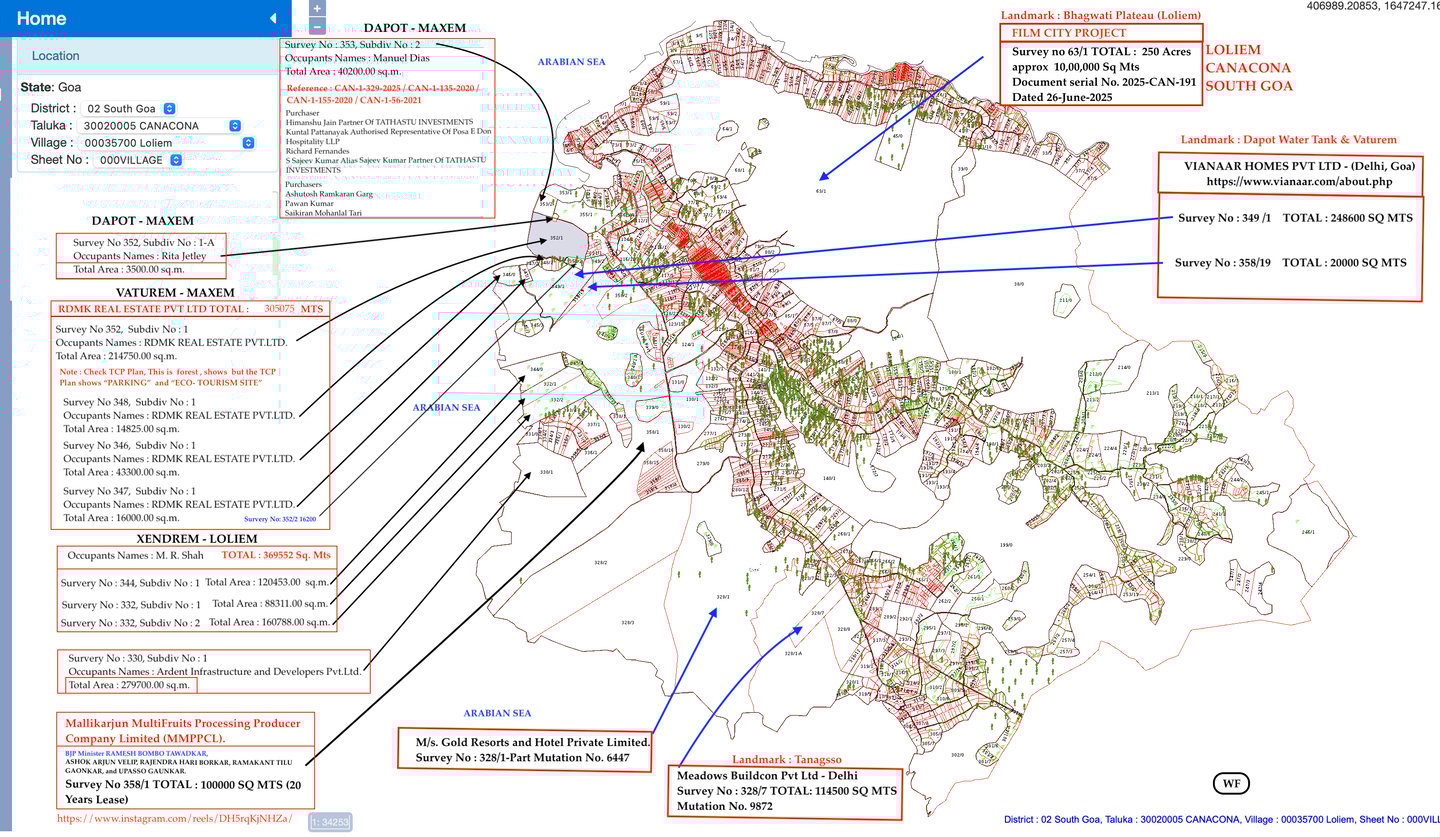 Highlights of approved projects, proposed projects, sale of land to outsiders (Non - Goan) and conversion of land zones to facilitate builders in Loliem Panchayat jurisdiction area.
